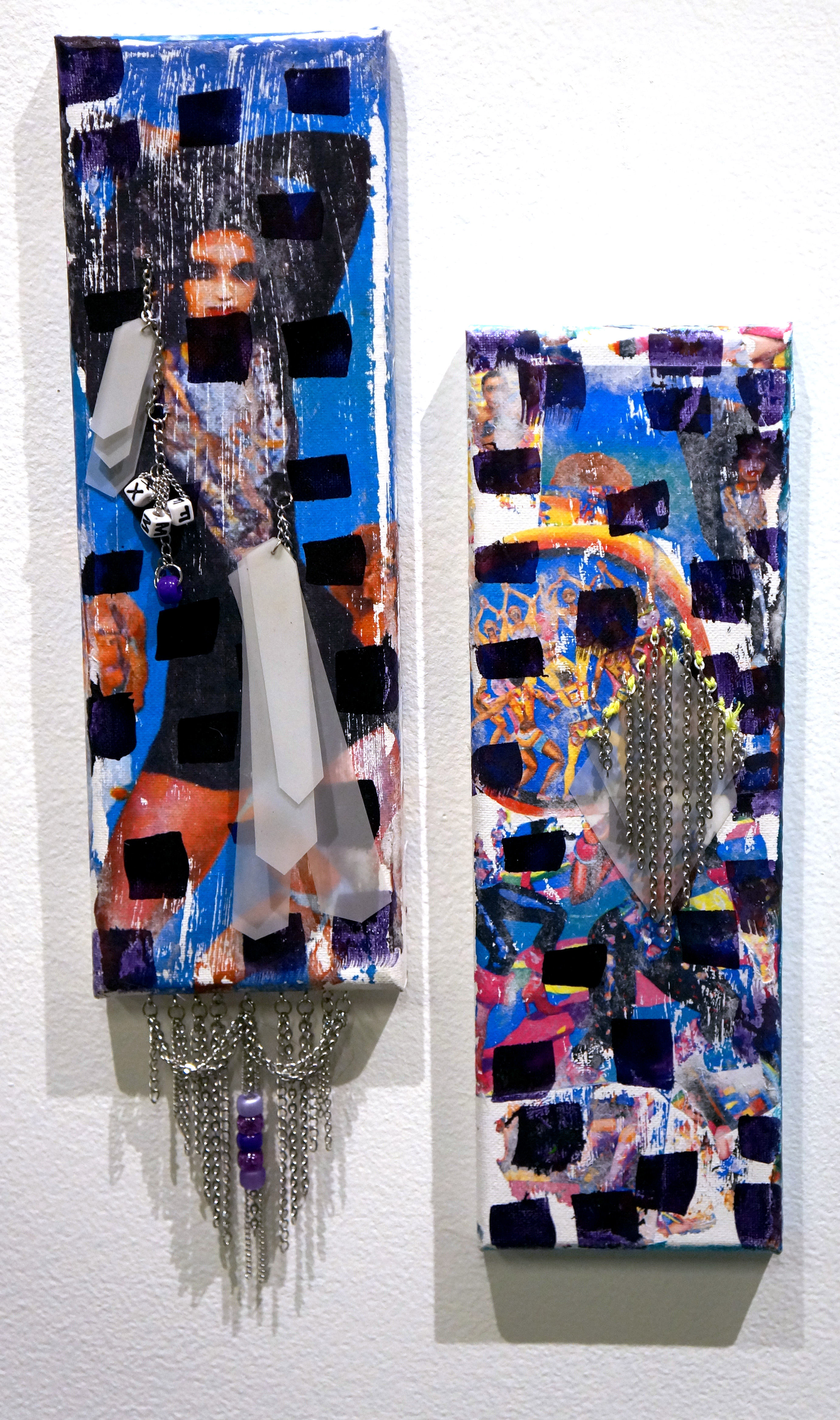 *All artwork marked with an asterisk utilizes images created using DALL-E 2 in the photo transfer process that are then edited in Adobe Creative Suite and printed and transfered using a gel medium
